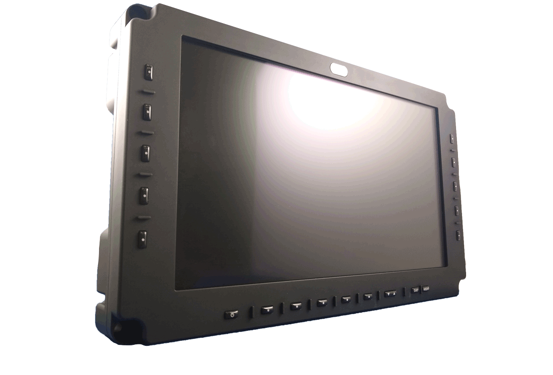 Finally, a truly high definition display with all the SMARTS! Engineered for the toughest climates, the OVRCR smart displays are the only perfect high definition solution for a complex MIL-SPEC network system. With an onboard multi-channel DVR, Full HD (1080p) graphics, gigabit ethernet support, and a scalable processing backbone, the OVRCR has the intelligence to interpret, record, and communicate with the most advanced vehicular system in today’s cutting-edge military fleet. Robust graphic user interfaces, programmable bezel keys, optional touch screen, and customizable menus allow for this high-end smart display to be seamlessly installed and coexist with a wide array of sensors, computers, and communication networks.