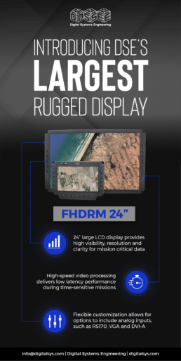 To learn more about the FHDRM 24”, DSE’s rugged displays or any of our custom products, contact us. To stay up to date on future product launches, follow Digital Systems Engineering on LinkedIn.
