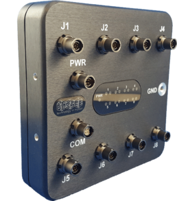 The powerful MIL-Spec VH4 video switch processes, manages, and distributes HD-SDI video. With four inputs and three processed video outputs, the VH4 is the ideal network device to efficiently supply video throughout any vehicle. Video distribution, Built In Tests (BIT), and view settings such as Picture-In-Picture, Picture-Over-Picture, and Quad View are easy to remotely manage via CANBus, RS422, and/or USB protocols. The miniature footprint of 6” x 6” x 1.13” and weight of just over one pound allow for flexible integration into compact installations. The fully sealed enclosure, wide temperature range, low power consumption and rugged MIL-Spec design permit 24/7 operation in the most demanding environments.